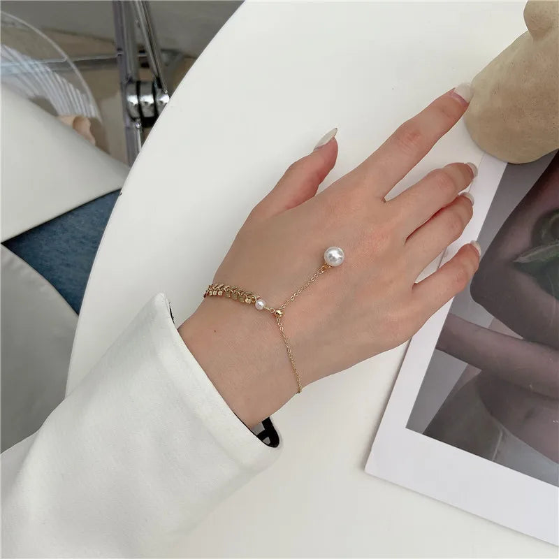 JWER Simple Wheat Ear Pearl Bracelet Necklace Earrings Jewelry Set for Women Temperament Lucky Gold Color Bracelet Charm Jewelry